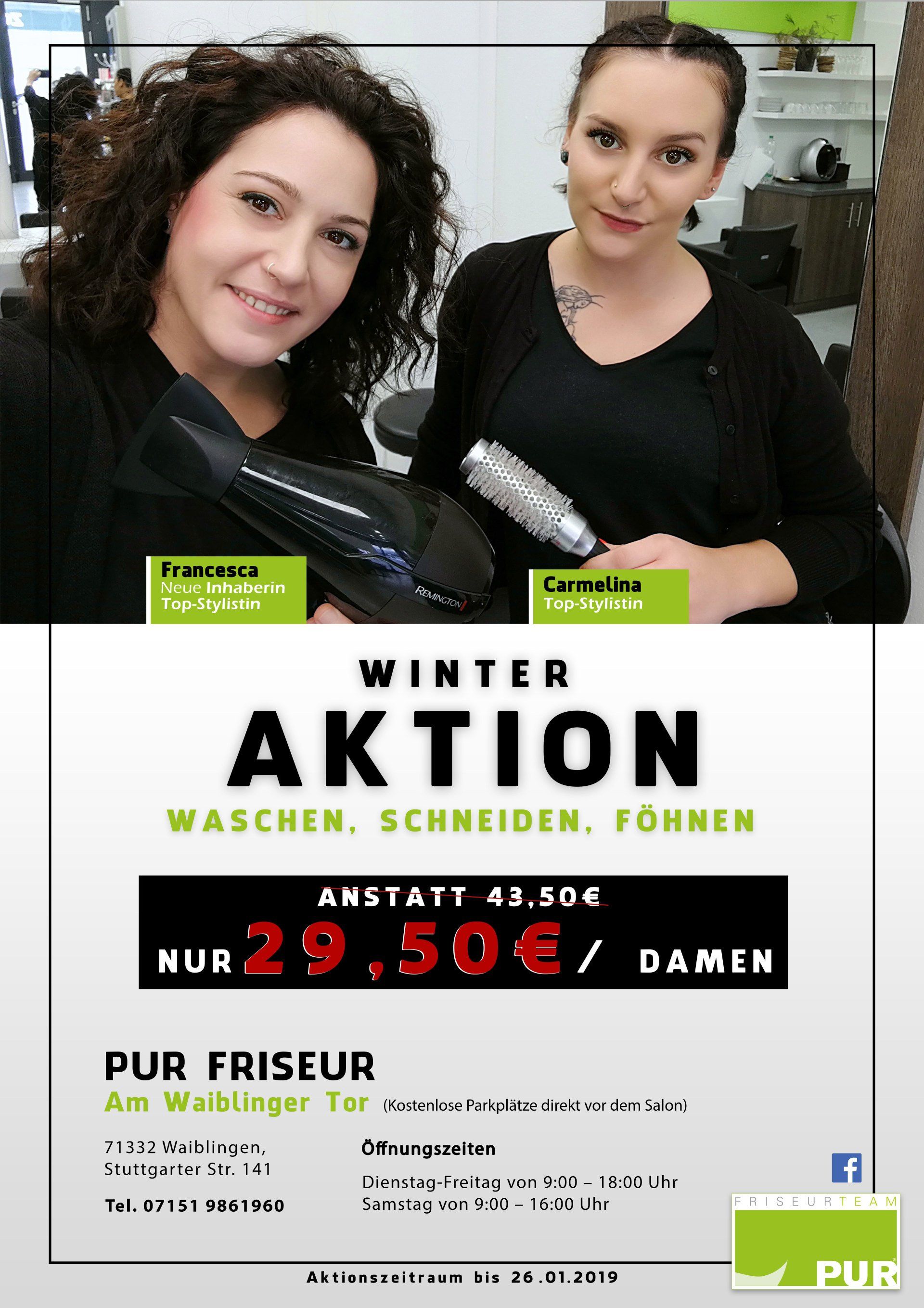 Ein Friseurbesuch soll wie ein kleiner Urlaub oder wie eine „Auszeit“ vom Alltag mit einem tollen Abschluss sein. Wenn das so empfunden wird, dann haben wir bei PUR alles richtig gemacht !